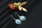 Weiße Blumenmosaik -Marmorohrringe für Freundin | Daisy Flower Micro Mosaic Marmor Ohrringe | Sterling Silber Mosaikschmuck für Geschenk
