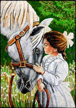 Kleines Mädchen mit Pferdewandkunst, Mosaikwanddekor, Bürowanddekor, Tierwandkunst - Marmorkunst für Wohnkultur