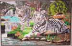 White Tigers Portrait Marble Mosaic Wall Art Handcrafted Marble mosaic Mural